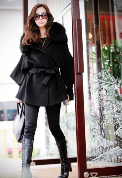 Look at the style as well – is it the right length for your height? If you have an imperfect body, don’t call attention to it with the wrong style coat either. Wide hips need a flared hem that ends around the knees to balance the body. A wrap coat reduces top-heaviness and gives you a waist. Choose what works best for you!