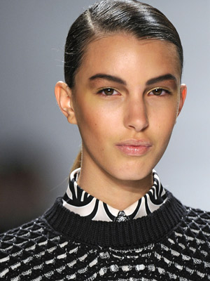 Glittery, gold, or yellow-tinted lip gloss sounded a bit frightening to me at first—more Foxxy Cleopatra from Austin Power’s Goldmember than a glamorous evening look. That is, until I went backstage at Derek Lam’s Spring 2012 and talked to makeup artist Tom Pecheux. For the show, Pecheux created an east coast version of the California girl, which meant gorgeous bronzed cheeks, bronze and yellow shadow on the eyes, and a gold-flecked, yellow lip gloss that translated to a warm, sunny look. “We put the yellow gloss on top of bare lips,” he told us backstage. “It actually warms up a woman’s natural lip color, which is usually cool in tone.” I tested the idea myself and was surprised to find that it really does look subtle and sunny, compliments holiday metallics perfectly, and doesn’t require a face full of bronzer.