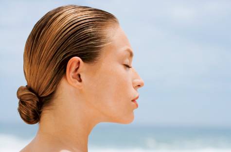 There’s nothing more sophisticated than no-nonsense tied-up hair on the beach. This is a practical look for anyone with long or medium length hair, and will help you stay sweat-free. You could either tuck-in a regular ponytail or twist hair into a casual chignon after applying a conditioning mask through the roots. Not only can you tame hair with the mask, but you also treat the tresses to a repair treatment all day. To finish, smooth flyaways with a bit of glossing mousse or serum.