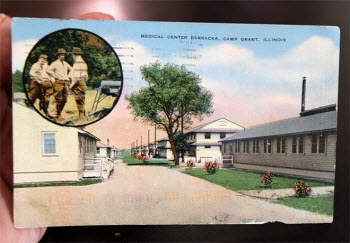 Their brother, George Leisenring, was stationed at Rockford’s Medical Center Barracks at Camp Grant, an Army post during World War II. Their parents were visiting him when they mailed the postcard home.