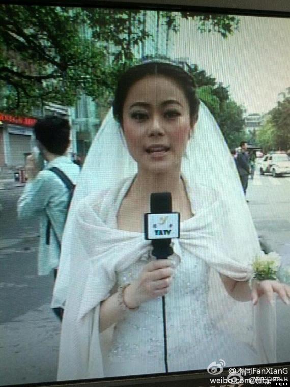 One reporter in China went above and beyond the call of duty when she abandoned her own wedding to report on the massive earthquake that struck the city of Ya’an in southwest China Saturday.