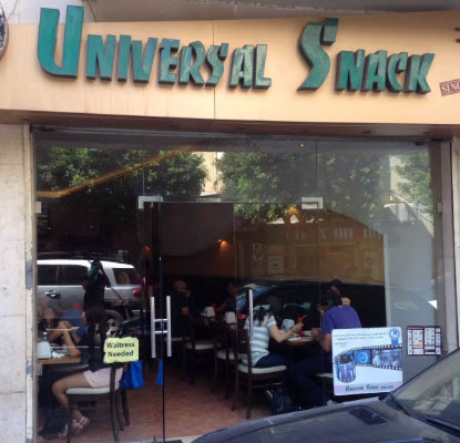 When you arrive to the building of the American University in Beirut, you can not help but Afattk at the opposite corner a large number of young men and women clamoring to wait their turn before the doors of a restaurant «Snack Universal». This may seem somewhat strange, in a street full of diverse restaurants, which aims to meet the different tastes of the patrons, especially for students of this university great edifice. But it used to offer a taste of what this restaurant would not find it in surprising! «In the late sixties, and after my return from exile, the opening of the restaurant’s (Fast Food), then this type of cuisine is still obscure, it was that gave him the name (Snack Universal), inspired by the diversity of dishes that we provide, and today Work continues with the sons and the Order of Naji ».. With these words began, Mr. Jamil Abu Salman Talking about the privileged place he owns, and who was able to take for himself a high position in the world of Lebanese restaurants, Vkamira program «people talk» accompanied by inspectors from the Ministry of economy entered the kitchen of this restaurant in the episode dealt with the peace of food, it was said to him In this episode: «It is after a long day of twisting, shocks and disappointments Bmtaamana health standards, we entered the restaurant was in any way contrary».